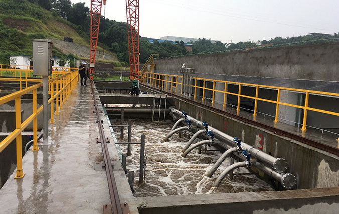 本項(xiàng)目設(shè)計(jì)規(guī)模15000噸/天,分三期實(shí)施,一期新建日處理5000噸/天污水處理廠,深度處理工藝MBR系統(tǒng)設(shè)計(jì)一期處理規(guī)模為3000噸/天,污水處理主體工藝采用A2O+MBR,出水排放標(biāo)準(zhǔn)達(dá)到《四川省岷江、沱江流域水污染排放標(biāo)準(zhǔn)》(DB51/2311-2016)合格標(biāo)準(zhǔn)。項(xiàng)目選型為水藝SMU-30A產(chǎn)品,設(shè)計(jì)平均通量為13.35L/m2/h。項(xiàng)目設(shè)計(jì)2座膜池,每座膜池布置6個(gè)膜架,每個(gè)膜架52簾SMU-30A,共用膜面積9360平方。項(xiàng)目投運(yùn)時(shí)間為2018年3月。